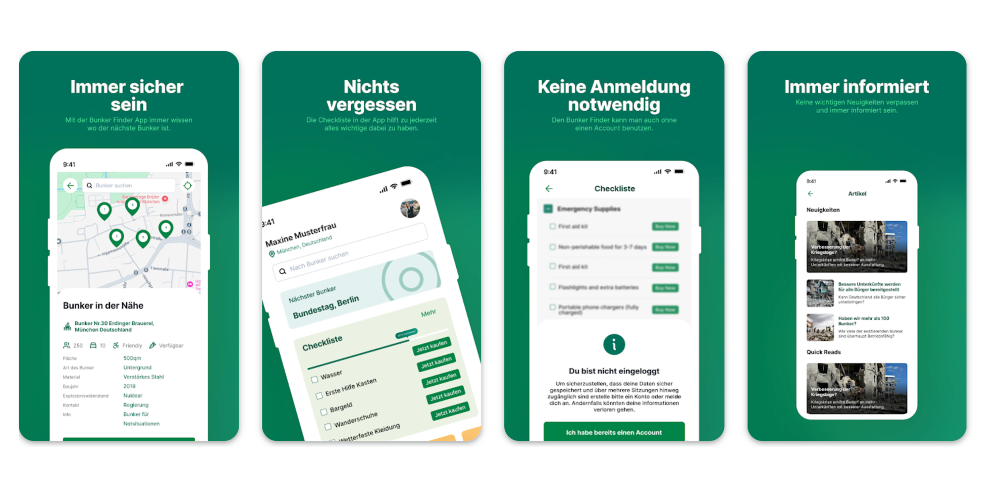 Get the most reliable bunkers in all of Germany with BunkerFinder. Hand-picked information and a detailed checklist prepare you perfectly for every situation. Keep track of bunkers everywhere in Germany.
