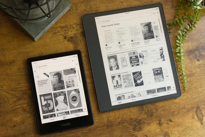 Sure, physical books take up space. But look at the density of information in a loaded bookshelf, the spine of each work doubling as a display of its title and author. What a neat trick. As well as a decorative one.