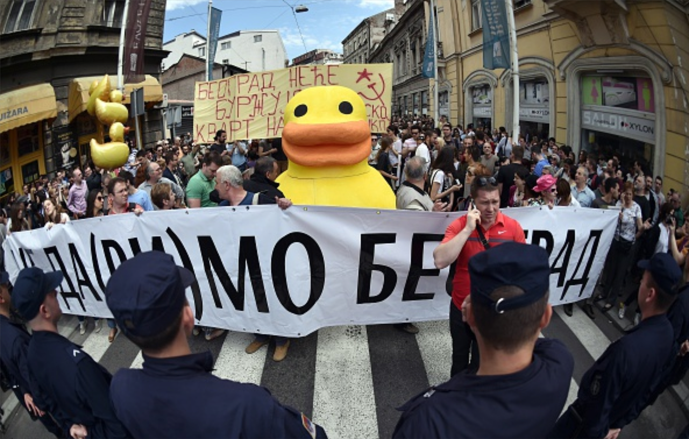 Since then, Don’t Let Belgrade Drown has become a prominent force against the increasingly authoritarian and some would say corrupt regime of the Serbian president, Aleksandar Vucic.