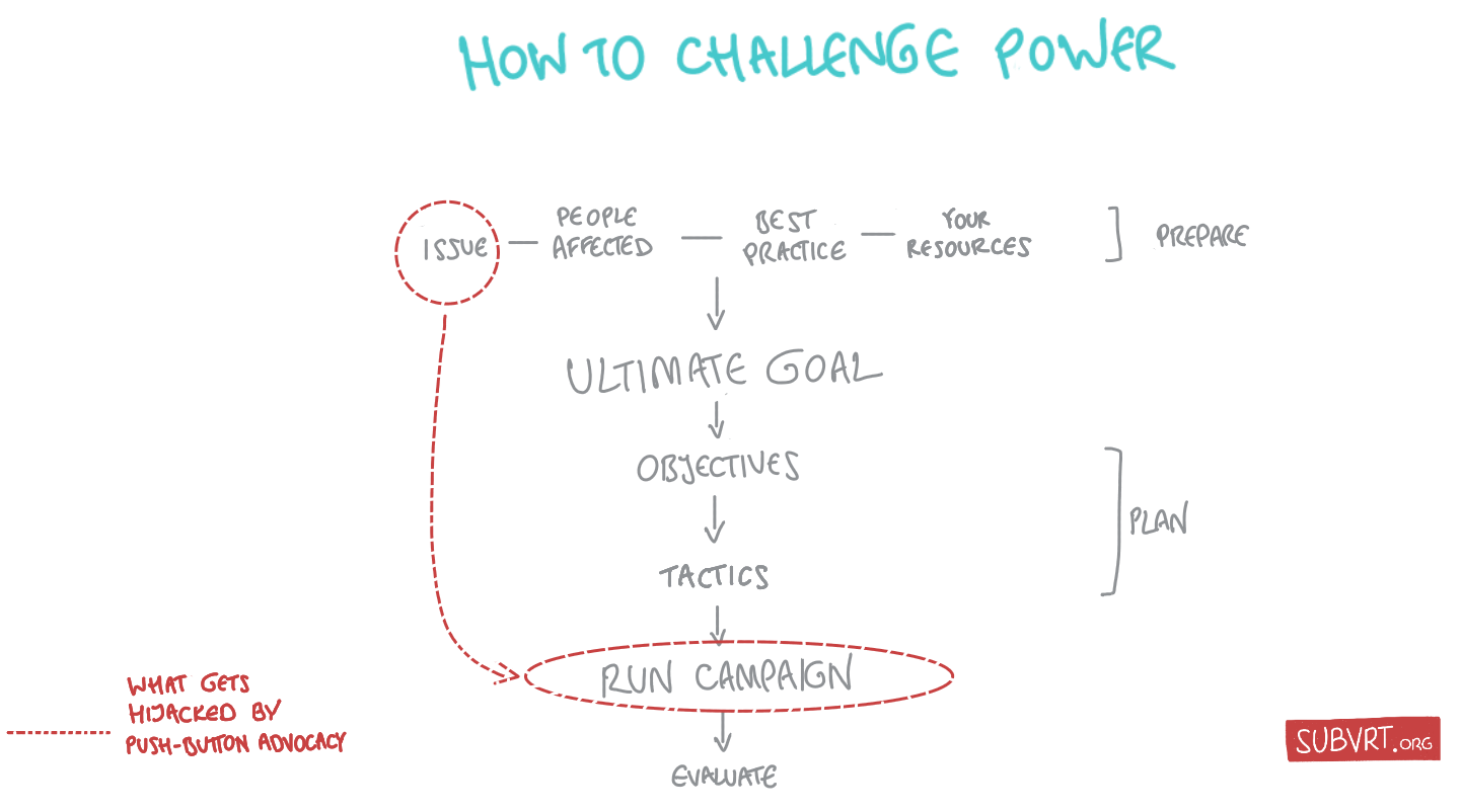 If you're following it, too, all you need to avoid the lure of push-button advocacy and activism junk food is to use Twitter consciously. Exploit it to help you move through the steps of the impact method. Instead of allowing it hijack your method entirely.