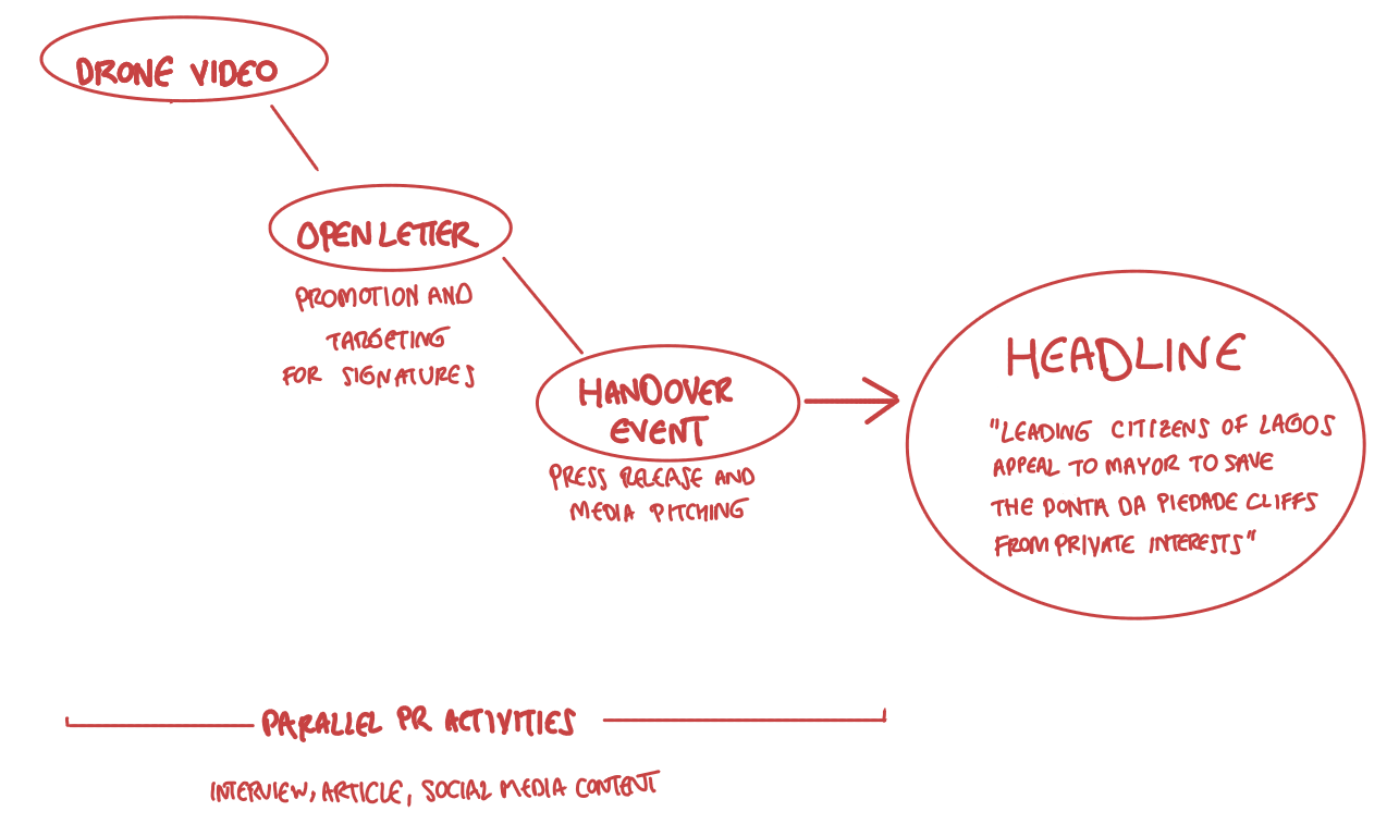 We found out that the Ponta Da Piedade cliffs were a national treasure. This gave the story considerable PR value. Jon also mentioned that many influential residents lived near the cliffs, or had holiday houses in Lagos.