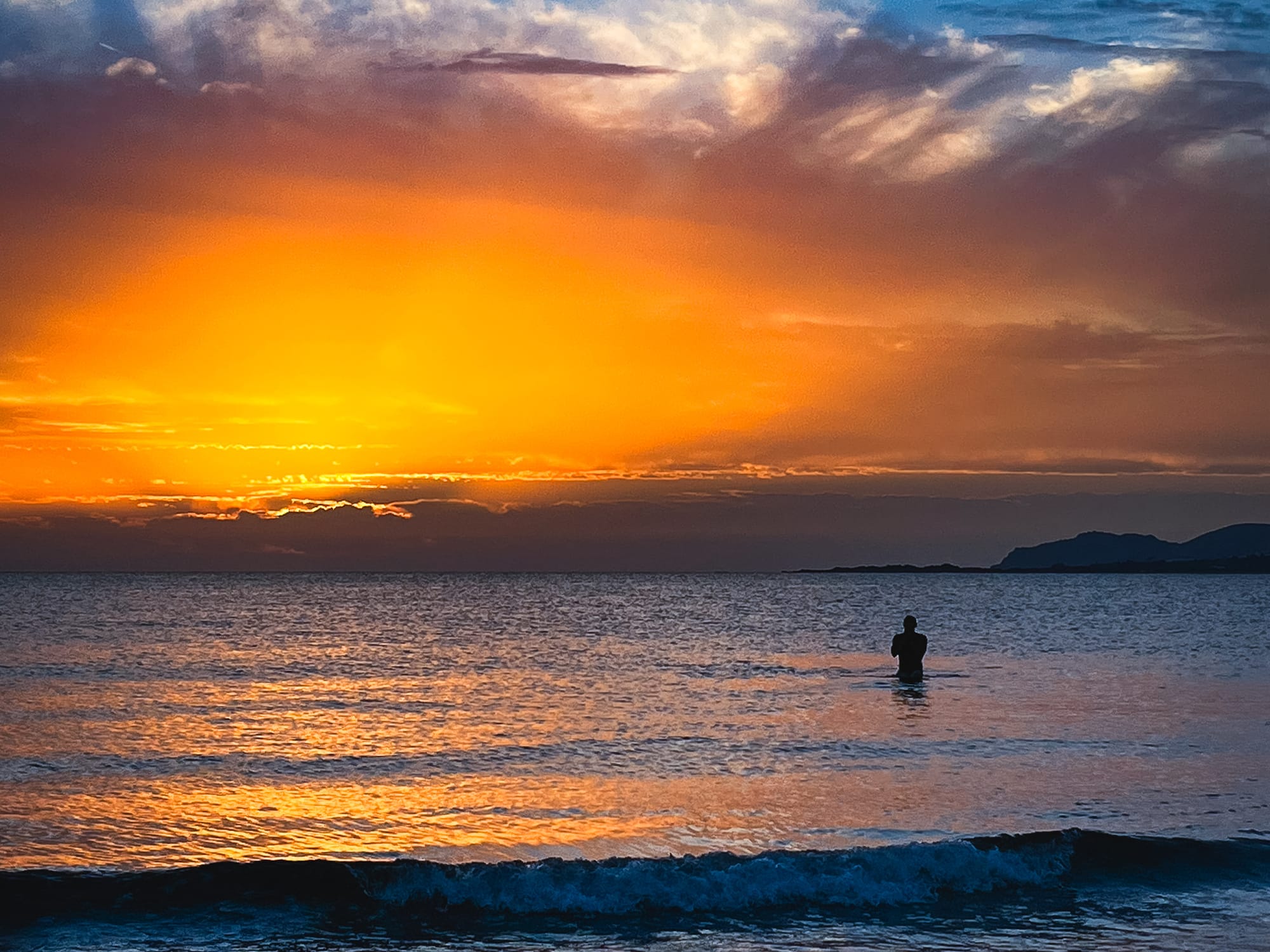 We stood in awe. Someone waded out, apparently to get a closer look. And for ten minutes, a natural lightshow unfolded, of unbelievable colour and texture. It was marvellous.